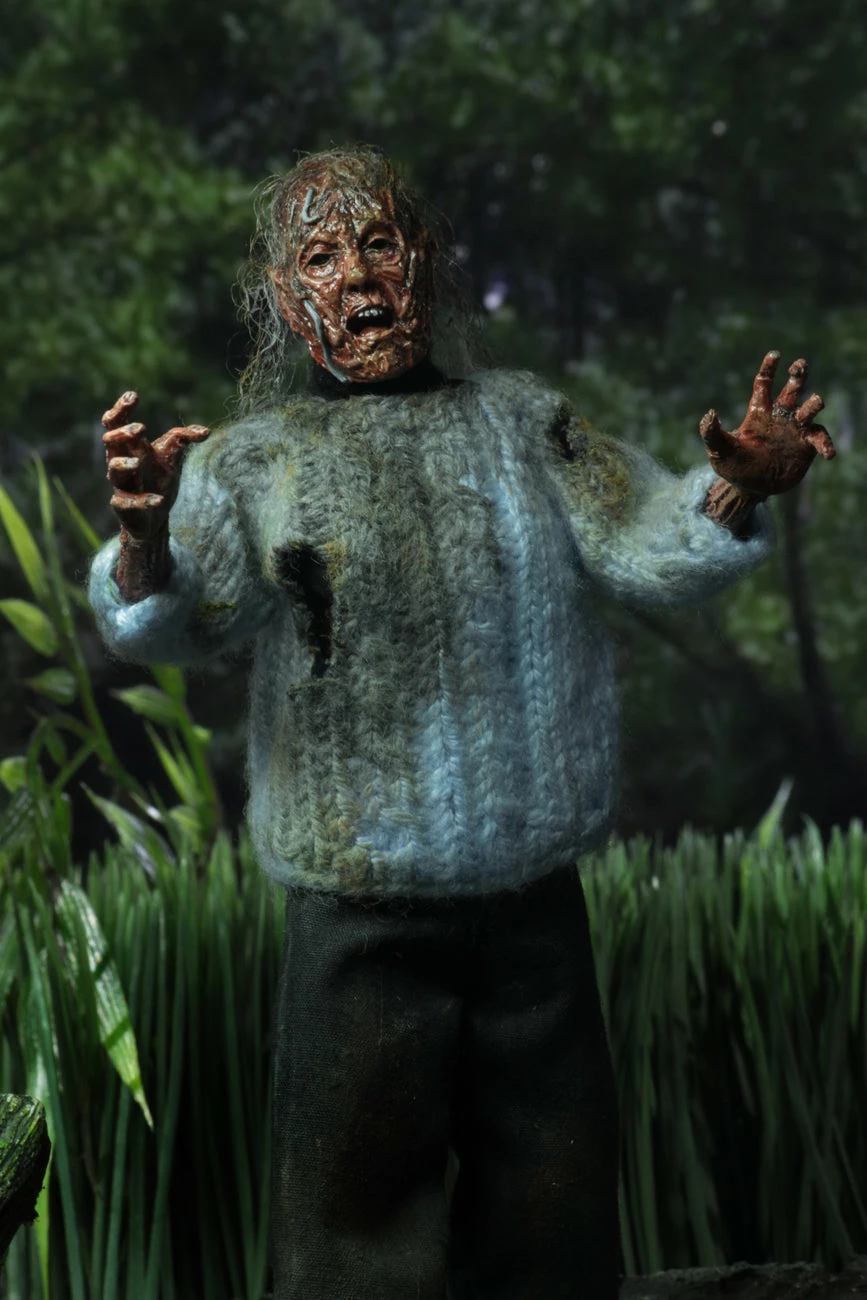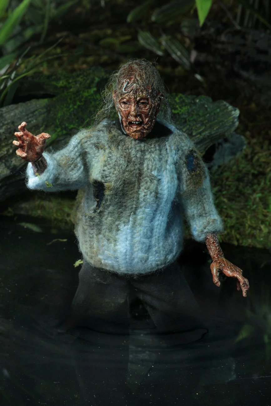 The “Lady of the Lake” figure depicts Pamela as she appears in Chris’ dream: a nightmarishly rotted body emerging from Crystal Lake to pull Chris in. The detailed figure is fully poseable and stands 8” tall, featuring synthetic hair and distressed clothing.