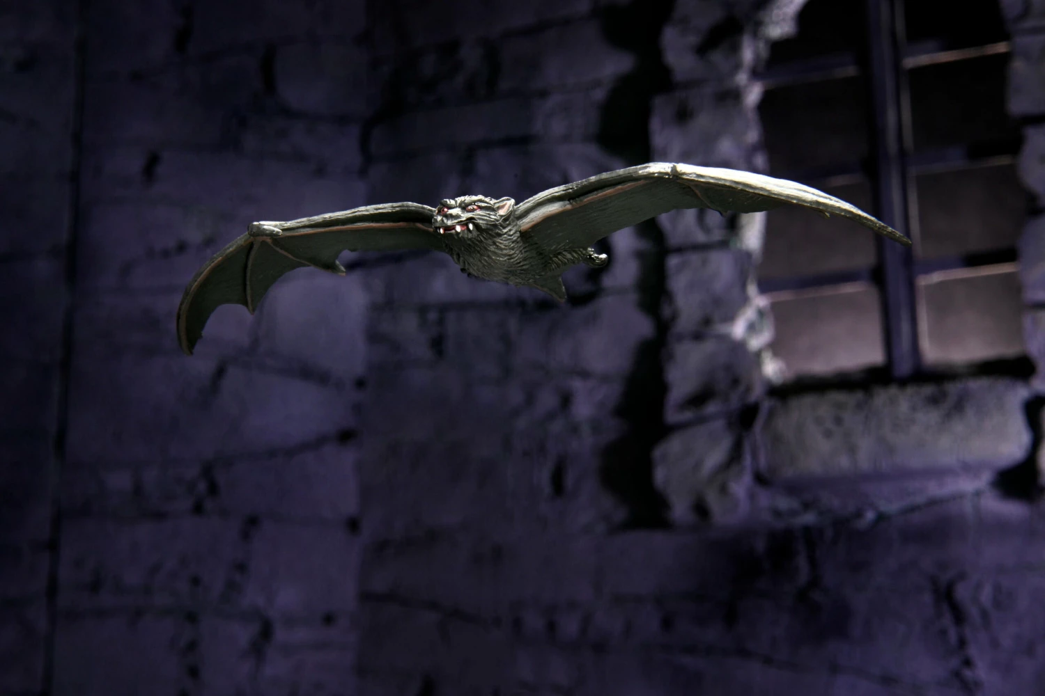 Standing in 7” scale, the Ultimate Dracula (Transylvania) action figure has a soft goods cape and comes in premium anniversary packaging with plenty of accessories: 3 interchangeable heads, interchangeable hands, large bat, wine bottle, goblets, candlestick and serving plate.